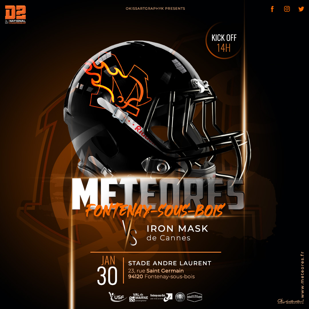 Pour le compte de la J2 du championnat national D2 de la Fédération Française de Football Américain, nos séniors recevront l’équipe des Iron Mask Cannes le dimanche 30 janvier prochain. Nul doute qu’ils auront à cœur de garder leur invincibilité. Kick-Off 14 heures au Stade André Laurent à Ville de Fontenay-sous-Bois